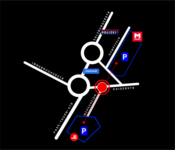 Leider steht nur eine begrenzte Anzahl an Parkplätzen direkt am Geschäft zur Verfügung. Von den Parkplätzen Steinlechner  sowie Panorama Schwimmbad sind es nur zwei Minuten zu Fuß.